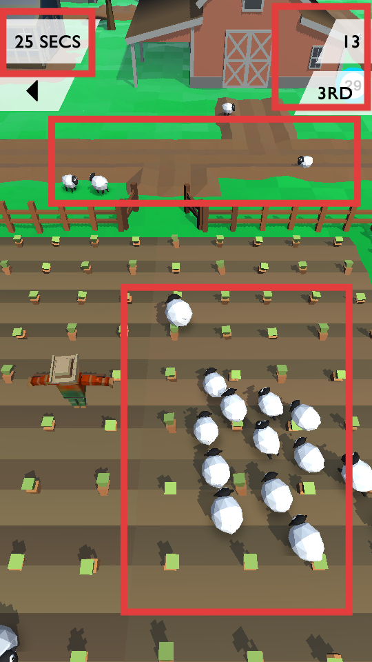 2、進入游戲后,操控小羊在場景中行動,去收集散落在各處的追隨者,讓自己的羊群逐漸壯大,同時留意其他羊群的情況。