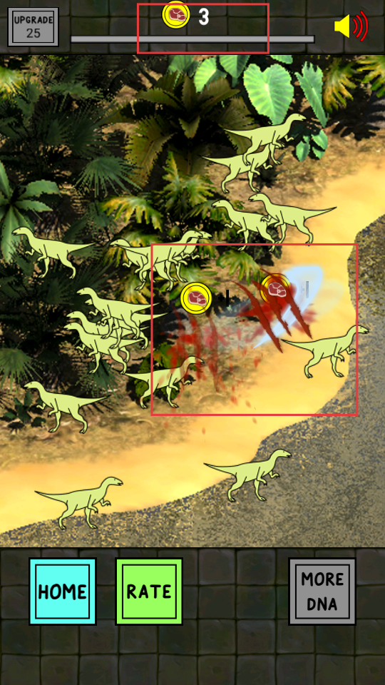 2、操控恐龍攻擊其他恐龍,成功攻擊后會獲得肉塊,上方肉塊數量會增加,不斷攻擊,積累更多肉塊。