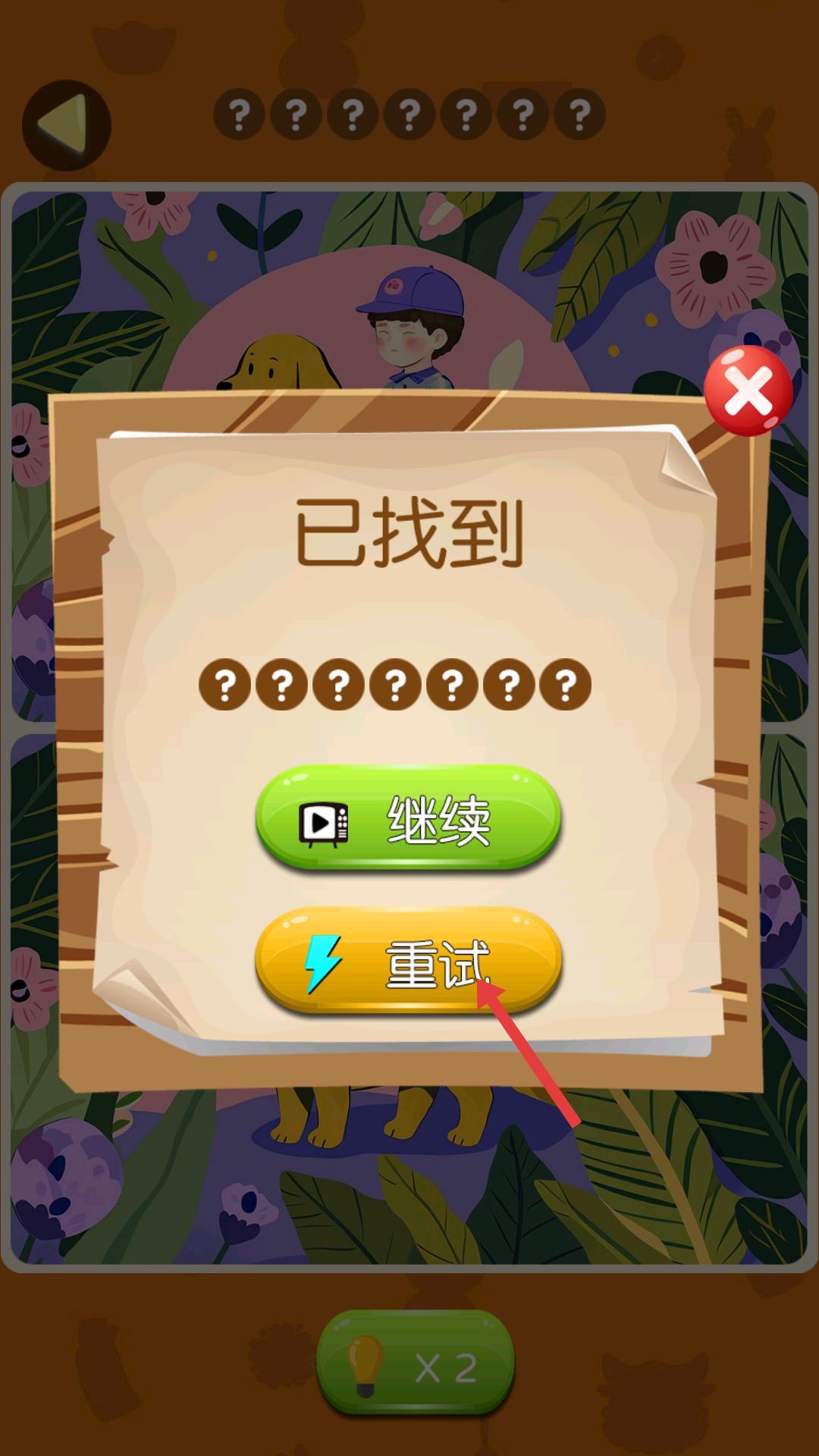 4、當界面顯示已找到時,若想重新挑戰,可點擊重試按鈕,再次進行找不同游戲,提升觀察能力。