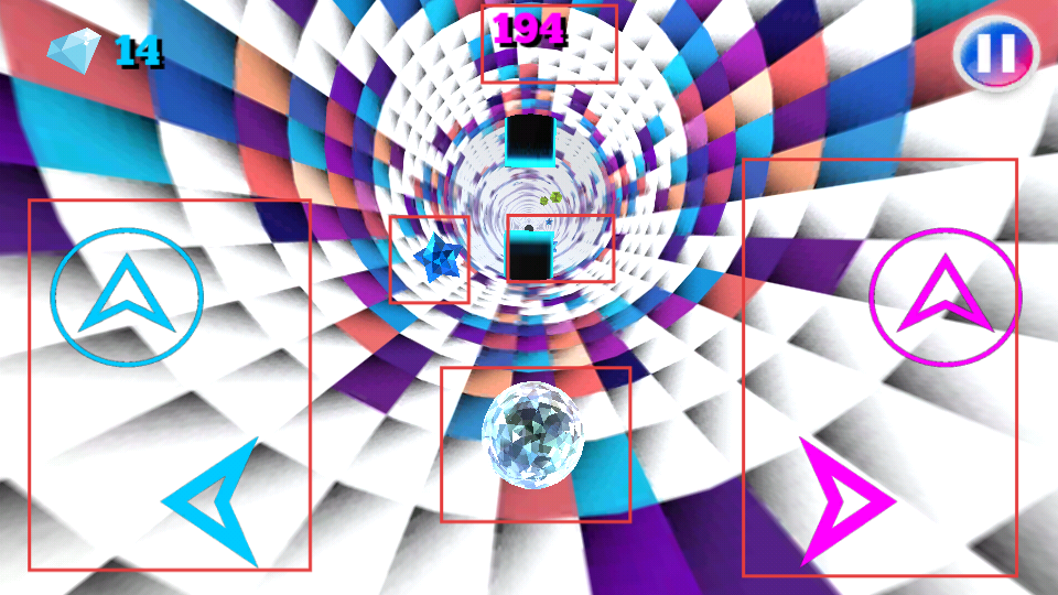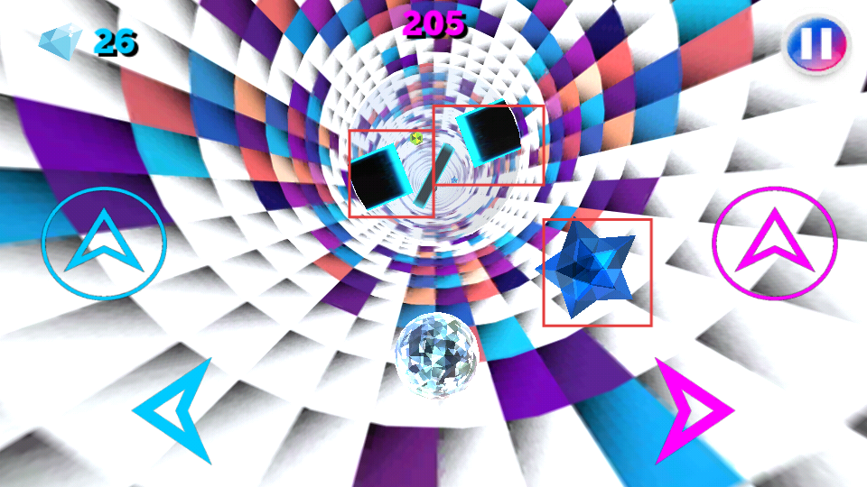 1、點擊播放按鈕,進入游戲,操控水晶球在彩色隧道中前進,準備收集物品和躲避障礙,開啟冒險。