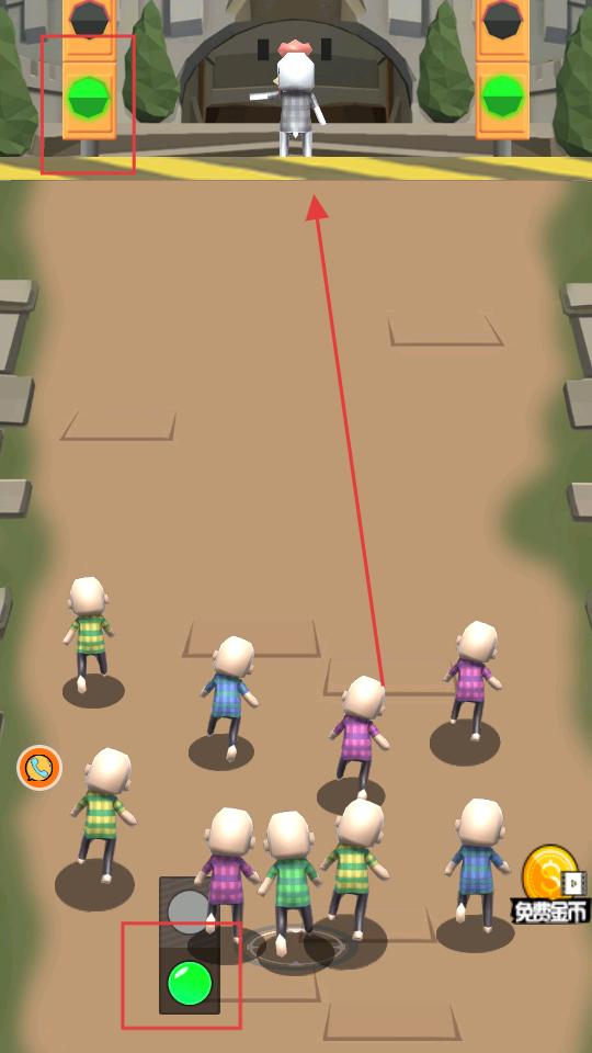 3、在奔跑過程中觀察交通信號燈等元素,當信號燈等顯示可通行時,操控角色繼續前進,避開障礙物,向終點方向移動,推進游戲進程。