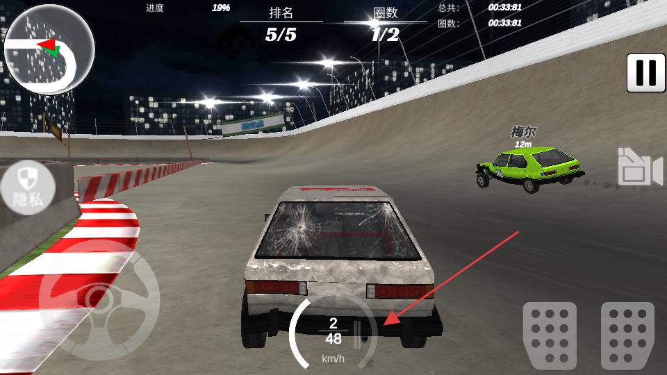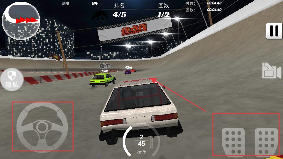 3、進入比賽后使用左側的方向盤按鈕操控賽車方向,利用右側的踏板按鈕控制賽車的加速與減速,在賽道上與其他對手展開競速。