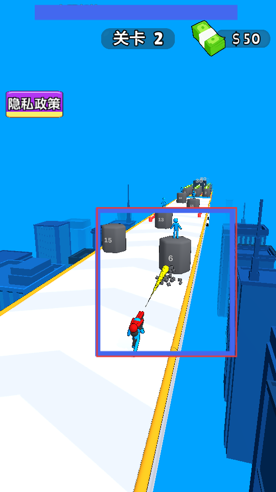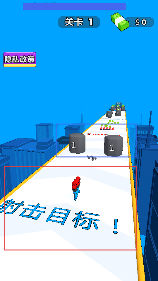 2、游戲開始后,角色會在道路上前進,遇到標有數字的障礙物,按照射擊目標的提示,操控角色射擊這些障礙物。