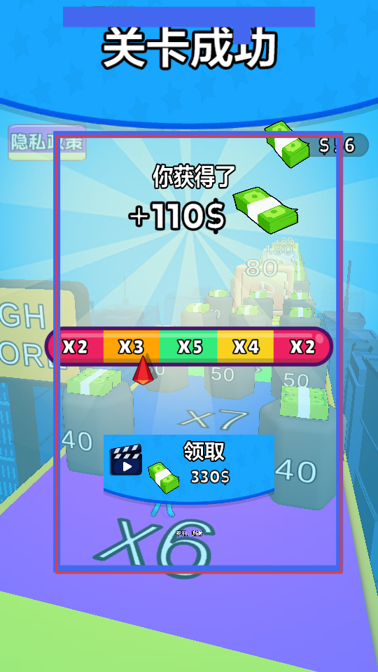 4、成功通過關卡后,會顯示關卡成功,并獲得相應的金錢獎勵,還能選擇領取更多獎勵,之后可進入下一個關卡繼續挑戰。