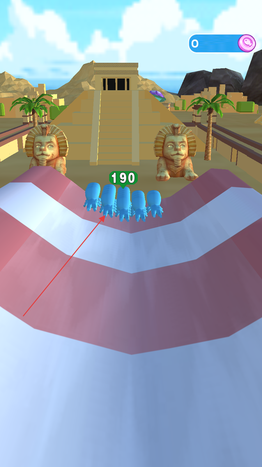 2、玩家操控小人不斷前進,躲避賽道上的障礙,盡量收集更多的道具和增加隊伍人數,順利抵達終點完成關卡挑戰。