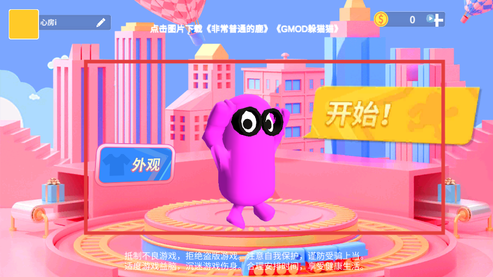 1、點擊開始按鈕進入游戲,也可先在外觀按鈕處查看角色外觀,之后進入比賽場景,和其他角色一起準備沖向終點。