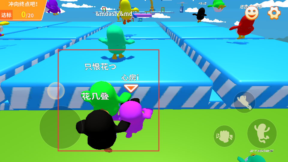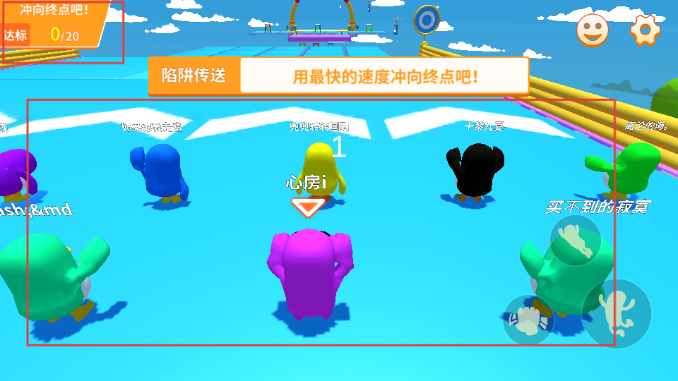 2、進入賽道后,根據提示用最快速度沖向終點,要注意躲避其他角色干擾,利用操作按鈕控制角色移動,爭取領先。