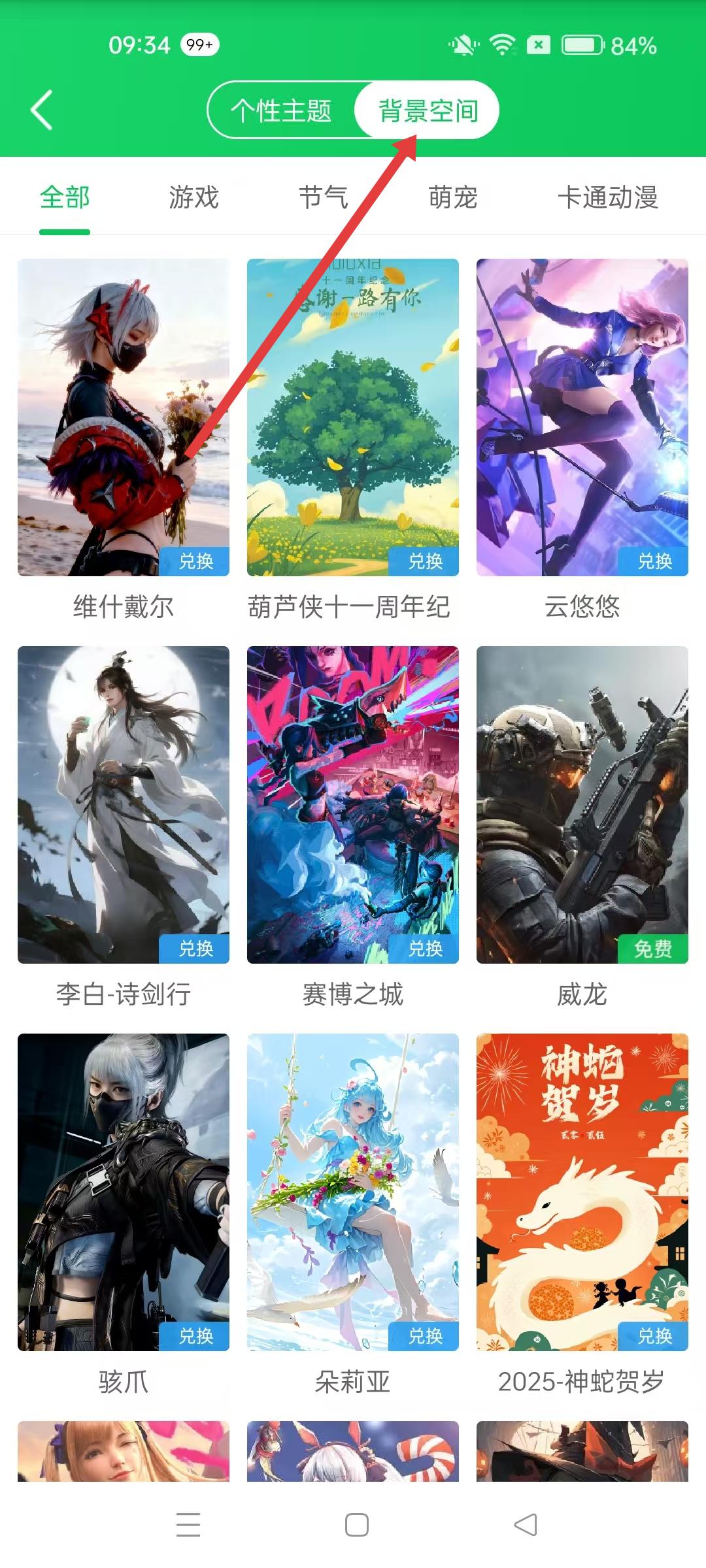 3、背景空間頁面,可看到維什戴爾、葫蘆俠十一周年紀等多種背景,按喜好選擇兌換或使用免費背景。
