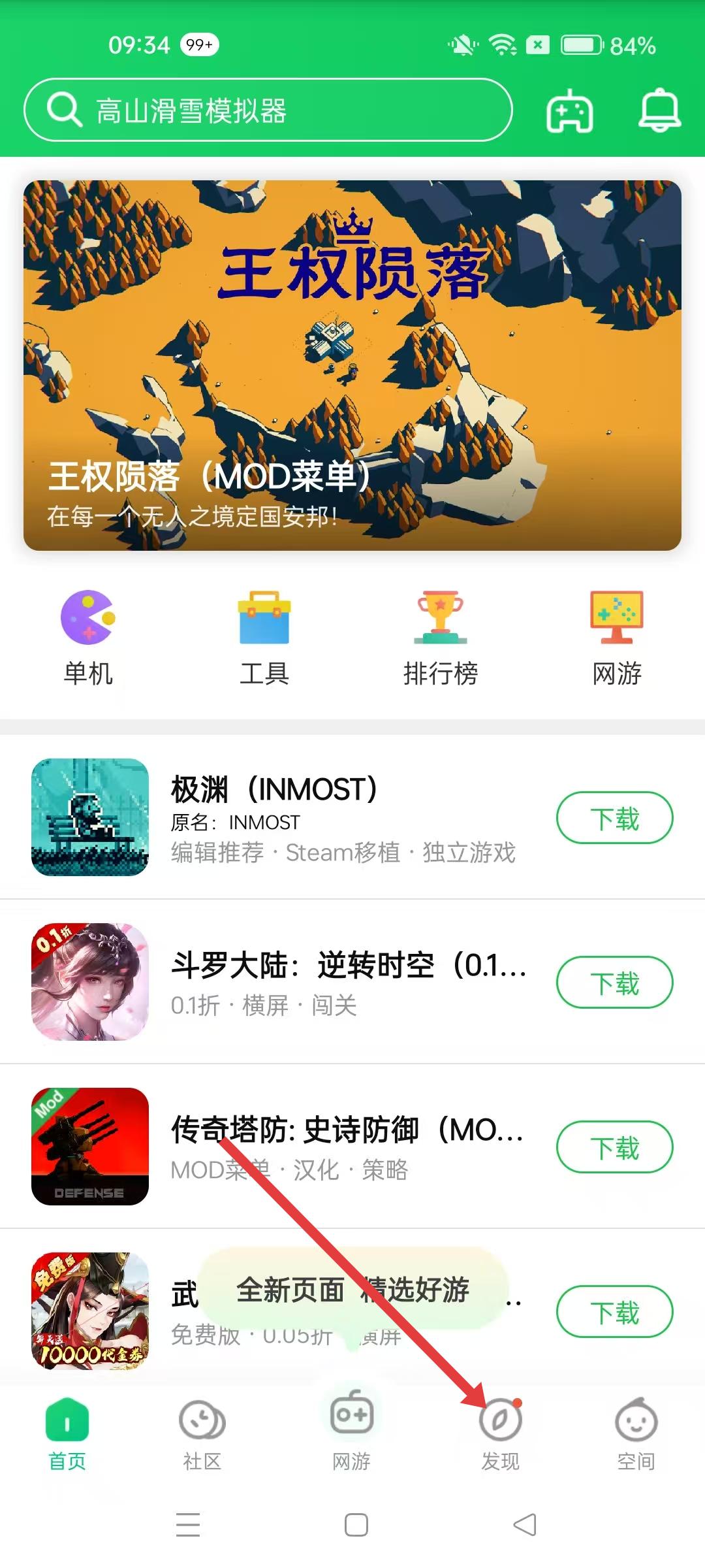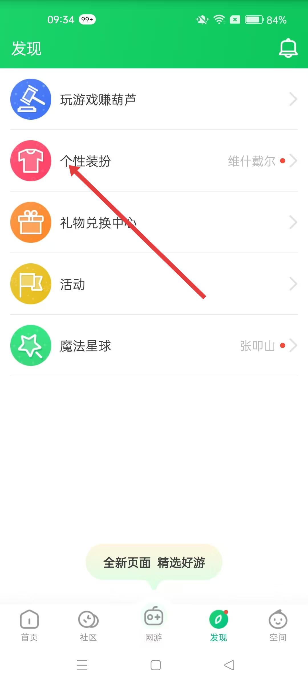 1、葫蘆俠首頁,點擊發現,可進入發現頁面,查看玩游戲賺葫蘆、個性裝扮等功能選項。