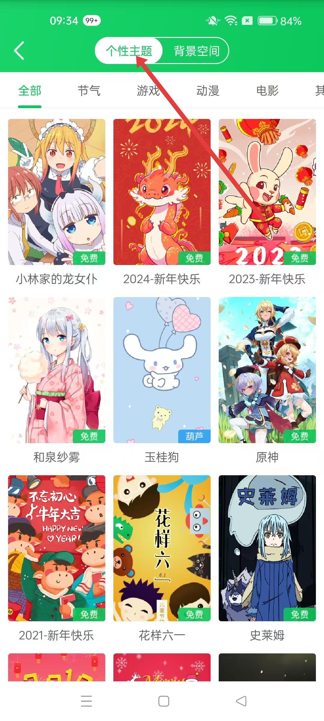 4、個性主題頁面,有小林家的龍女仆、原神等主題,可選擇免費主題或用葫蘆兌換喜歡的主題。