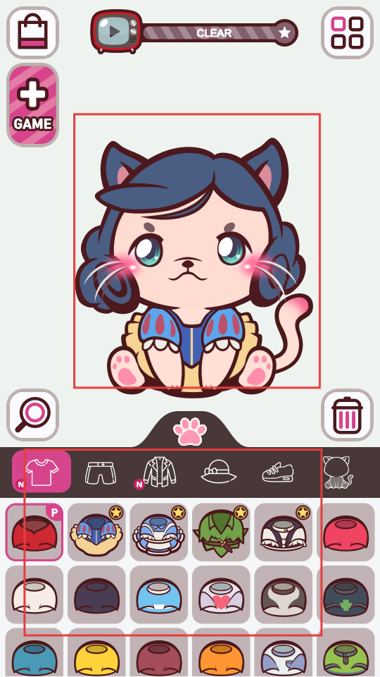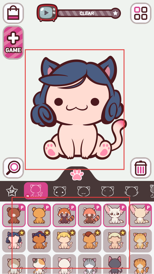 1、點擊PLAY按鈕,進入游戲,可從下方眾多貓咪形象中挑選喜歡的,選定后開始對貓咪進行裝扮,打造專屬形象。
