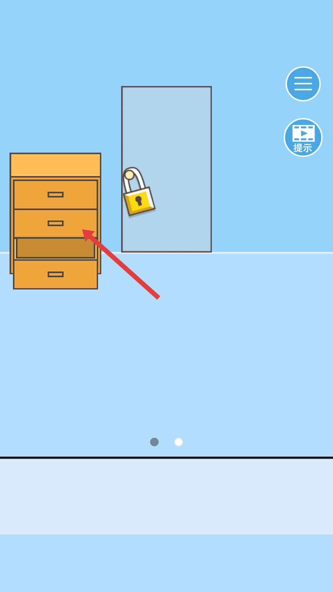 2、進入游戲后,看到帶鎖的門和抽屜,點擊抽屜,可從中尋找能幫助打開門鎖的物品,推進逃離進程。