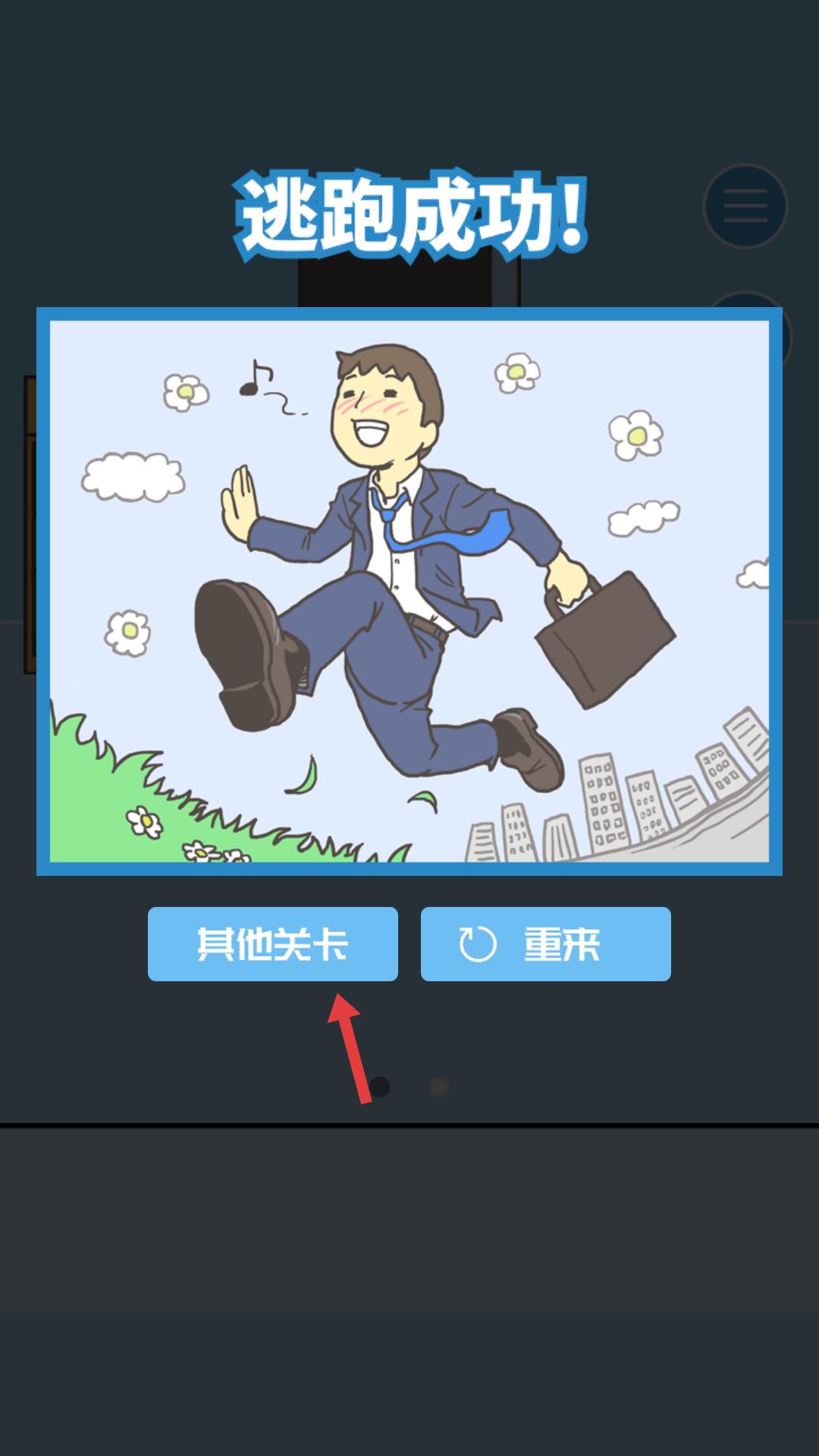 4、成功逃離辦公室后,會顯示逃跑成功界面,此時點擊其他關卡按鈕,可進入其他關卡,繼續新的逃離挑戰。