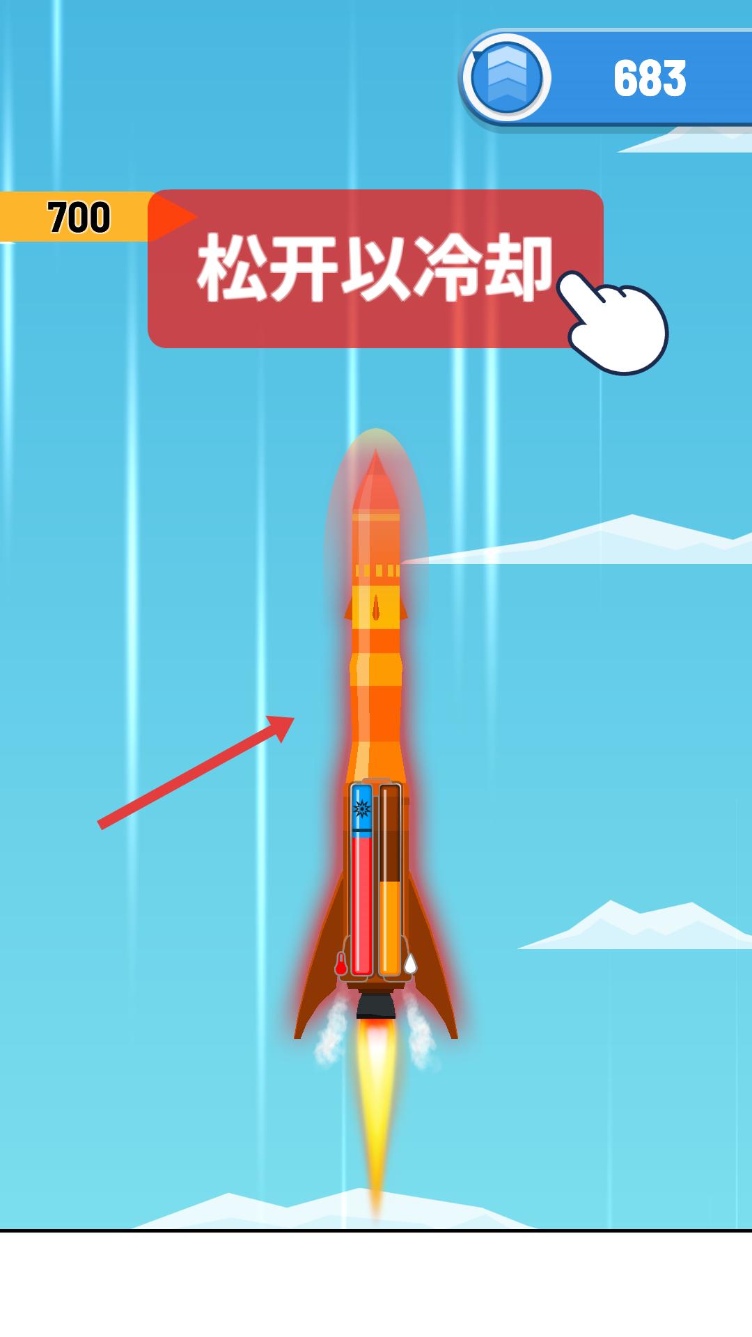 3、火箭飛行過程中,若出現松開以冷卻提示,說明火箭溫度過高,此時松開長按的手指,讓火箭冷卻,避免因過熱導致收益受損或飛行中斷。