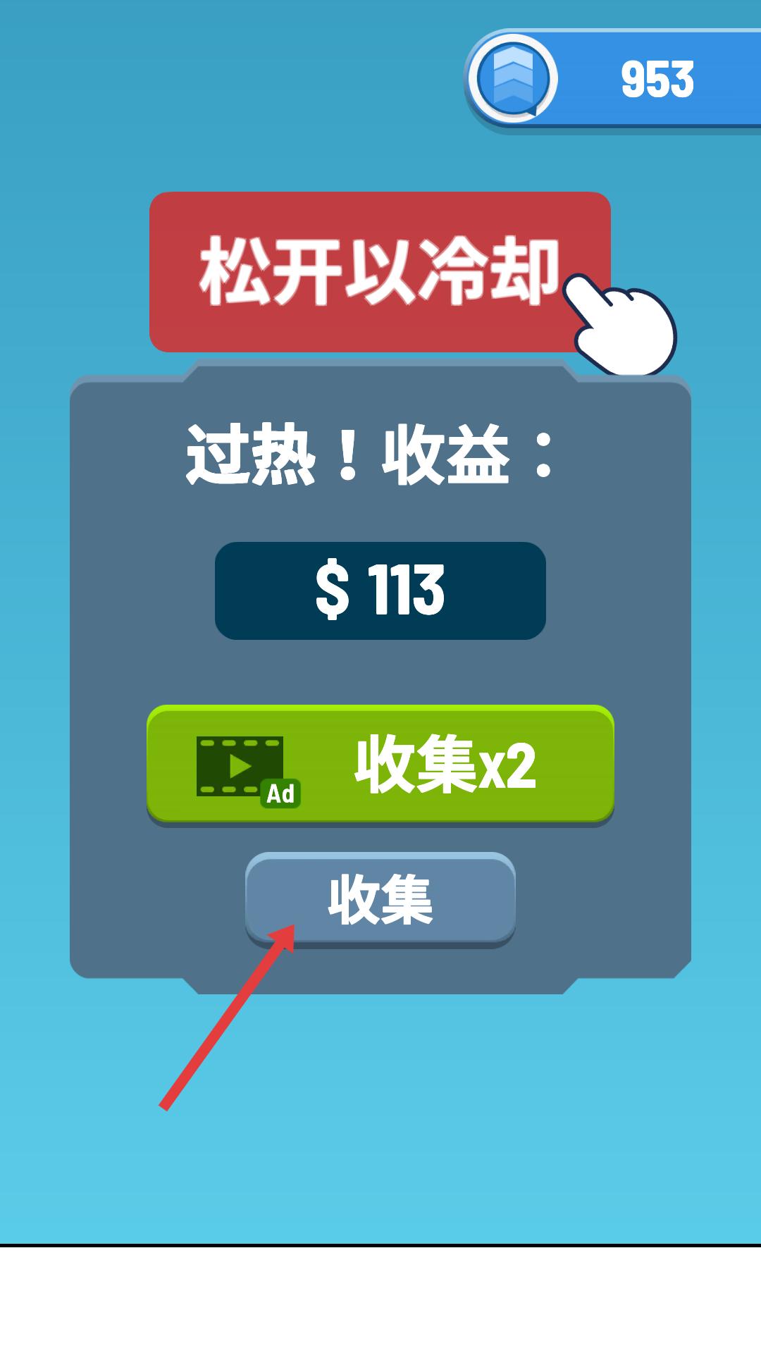 4、當火箭過熱時,會彈出界面,可選擇點擊收集按鈕直接獲取收益,或點擊收集x2按鈕觀看廣告后獲取雙倍收益。