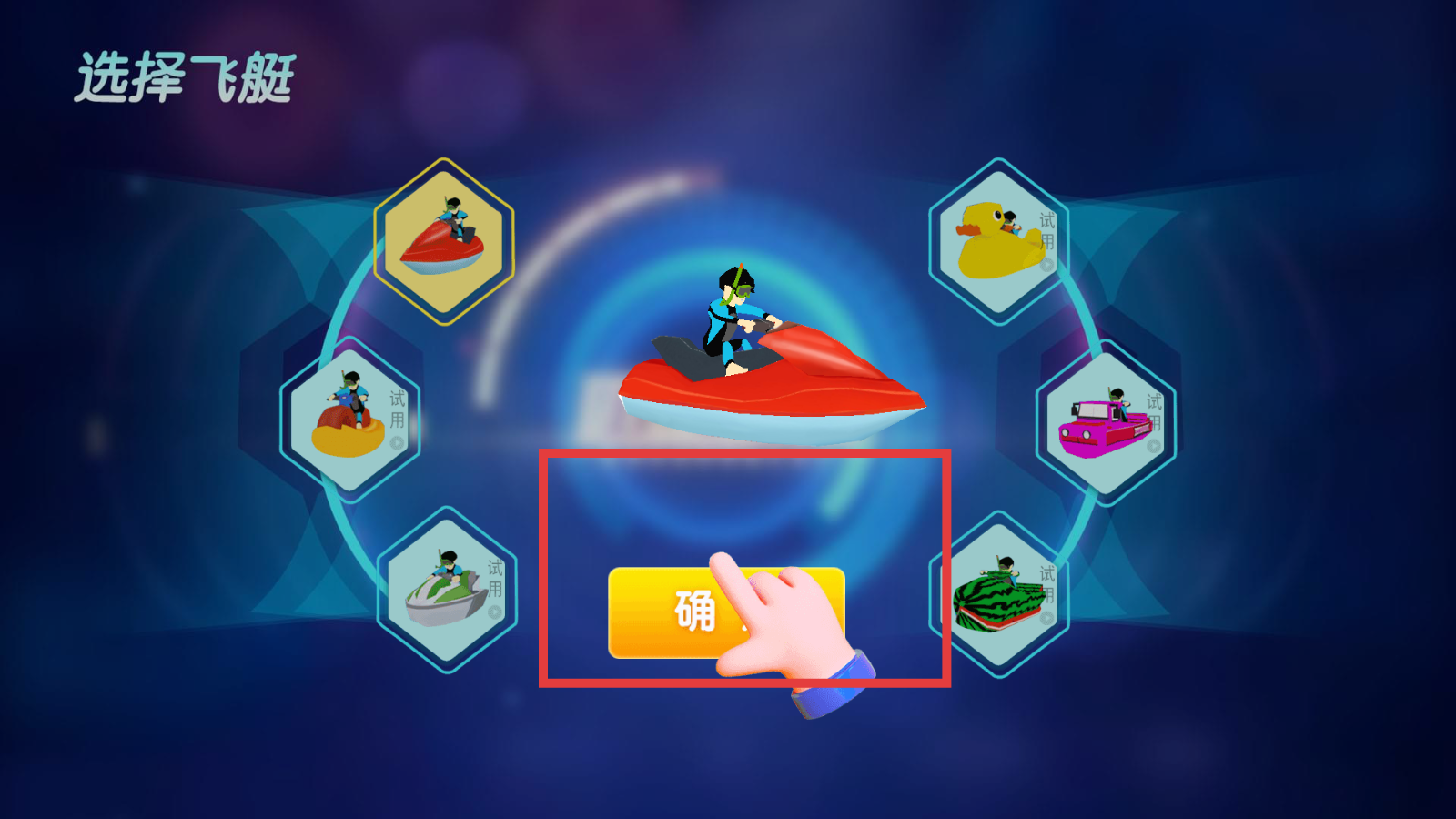 2、若在比賽前有選擇界面,可以在選擇飛的界面中挑選自己喜歡的水上摩托外觀,點擊確認按鈕確定所選摩托。
