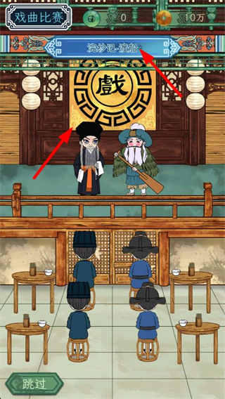 1、參與戲曲比賽,觀看舞臺上的表演內容,等待表演結束后,可查看比賽結果,若覺得等待繁瑣也能點擊跳過,快速推進流程。