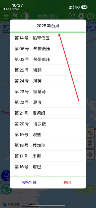 3、在臺風列表頁面可查看2025年第14號、第06號等多個臺風,選擇第25號海鳴可查看其詳細預報。