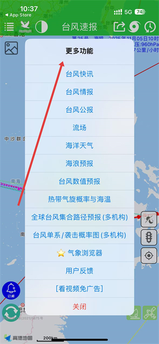 3、更多功能菜單,包含臺風快訊、臺風情報等10項功能,用戶可通過這些功能深入了解臺風相關的各類信息,滿足不同的查詢需求。