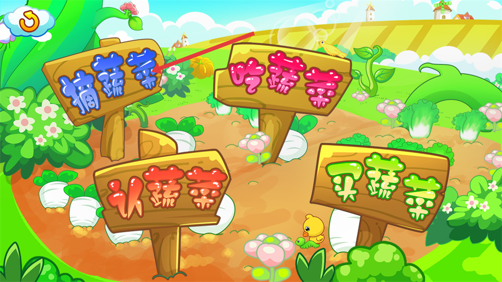 2、在游戲模式選擇界面,選擇摘蔬菜模式,進入到蔬菜種植的場景中,開始采摘蔬菜的操作。