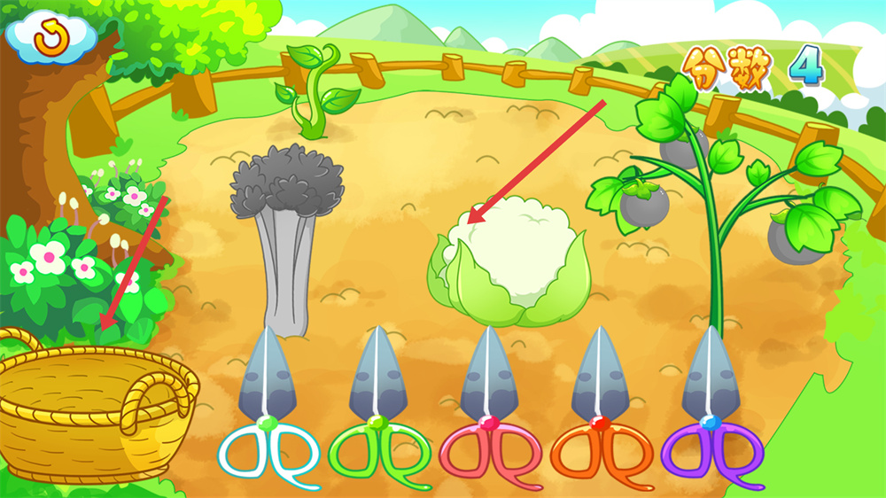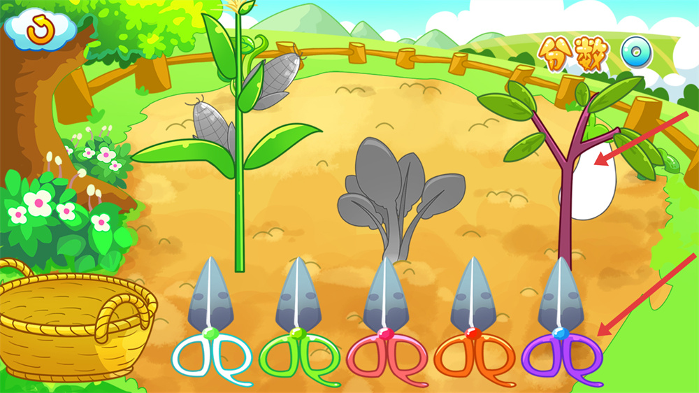 4、成功剪下蔬菜后,蔬菜會被放置到旁邊的籃子里,同時會獲得相應的分數,繼續采摘其他蔬菜可積累更多分數。