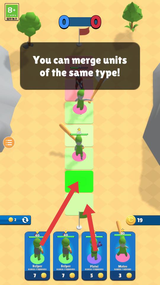 3、指揮合并后的人物,向敵人發起攻擊,在戰斗中合理運用小人們的力量,爭取勝利。