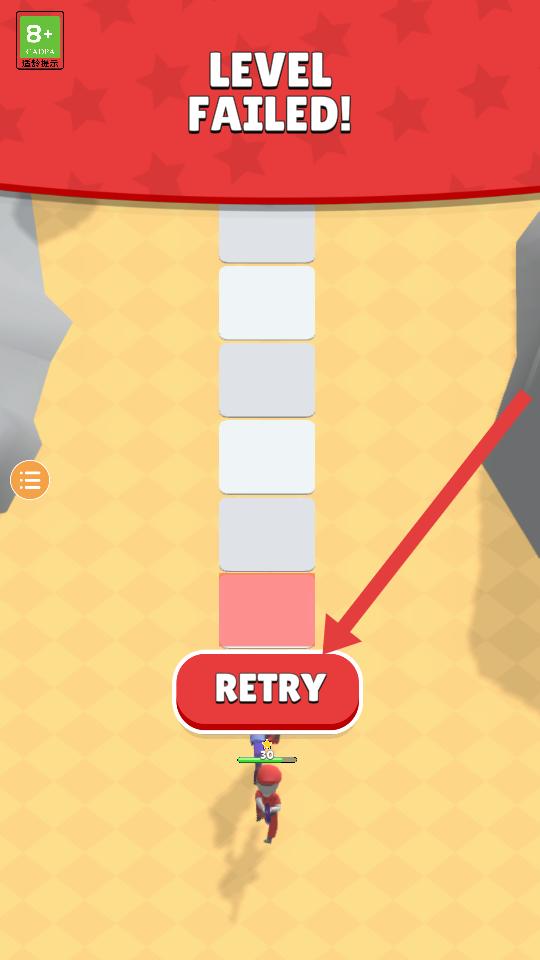 4、要是戰斗失敗,會出現闖關失敗的提示,此時點擊RETRY,重新挑戰一次該關卡。
