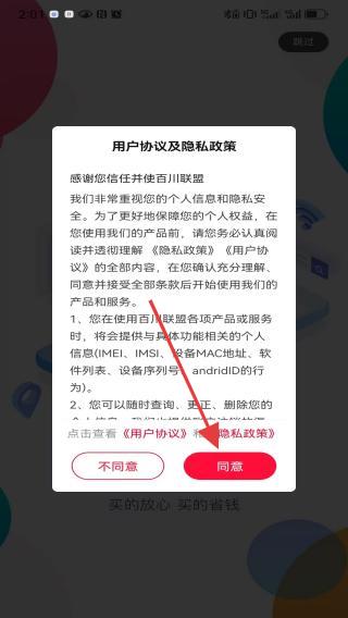 2、首次打開APP會彈出用戶協議及隱私政策界面,需仔細閱讀后點擊同意才能繼續使用APP,這一步是為了確保用戶了解并同意平臺使用個人信息的規則。