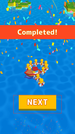 4、關卡完成之后,玩家可點擊NEXT按鈕進入下一個難度更高、場景更復雜的關卡繼續進行水上救援任務。