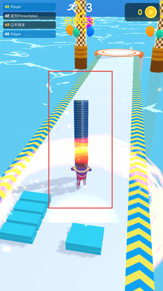 3、靠近道具時,讓角色獲取道具,道具會在角色身上堆疊,這些道具可能在后續沖刺或應對障礙時發揮作用。