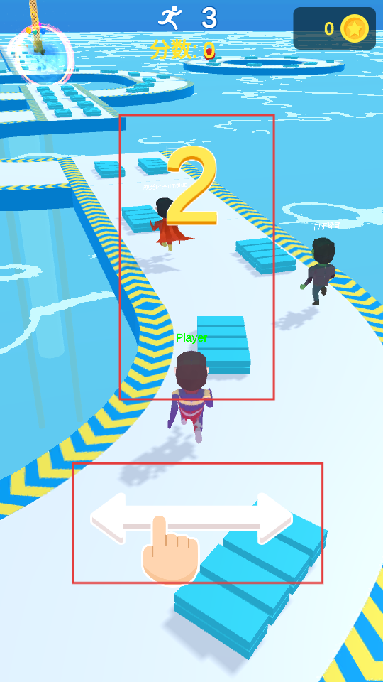 1、點擊開始,操控角色在水上賽道奔跑,和其他選手競爭,注意躲避賽道上的障礙,朝著終點前進,爭取獲得好名次。