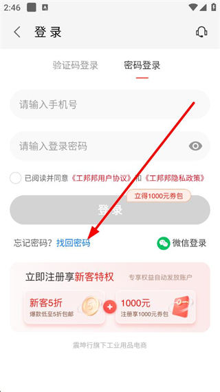 4、切換到密碼登錄方式,輸入已綁定的手機號和對應的密碼,若忘記密碼可點擊找回密碼,勾選協議后點擊登錄完成賬號登錄。