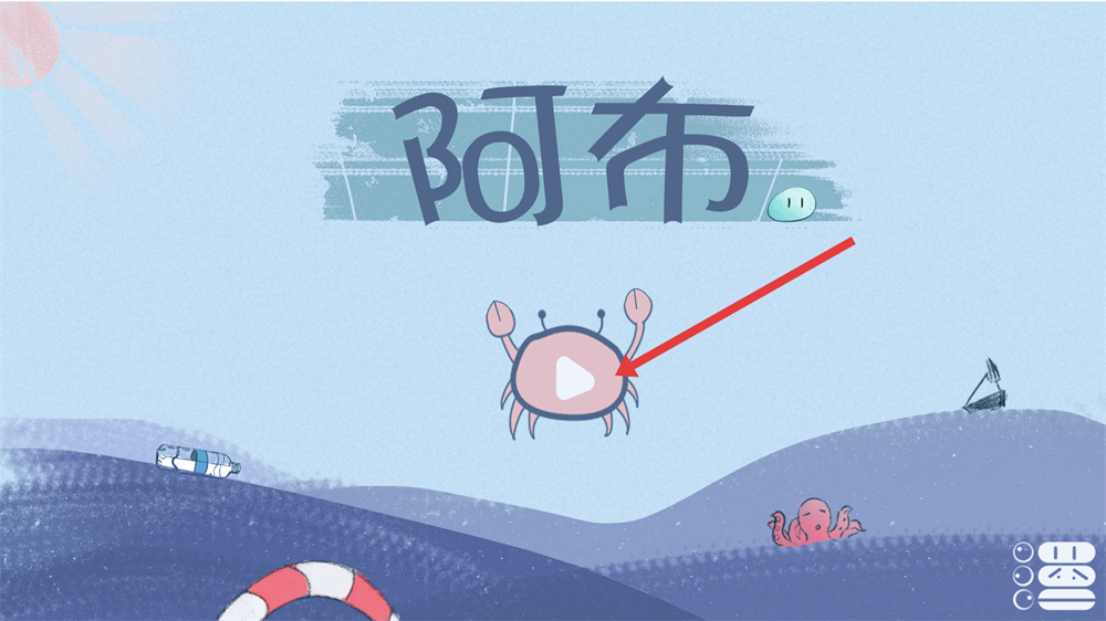 1、玩家進入游戲后點擊帶有播放標識的螃蟹圖案,開啟海底冒險之旅。