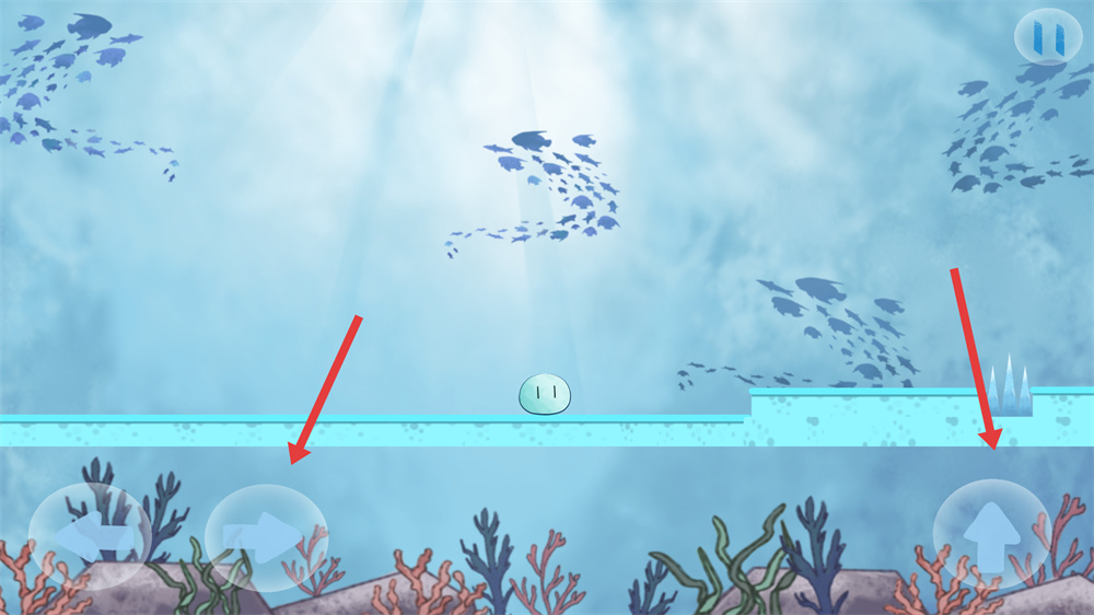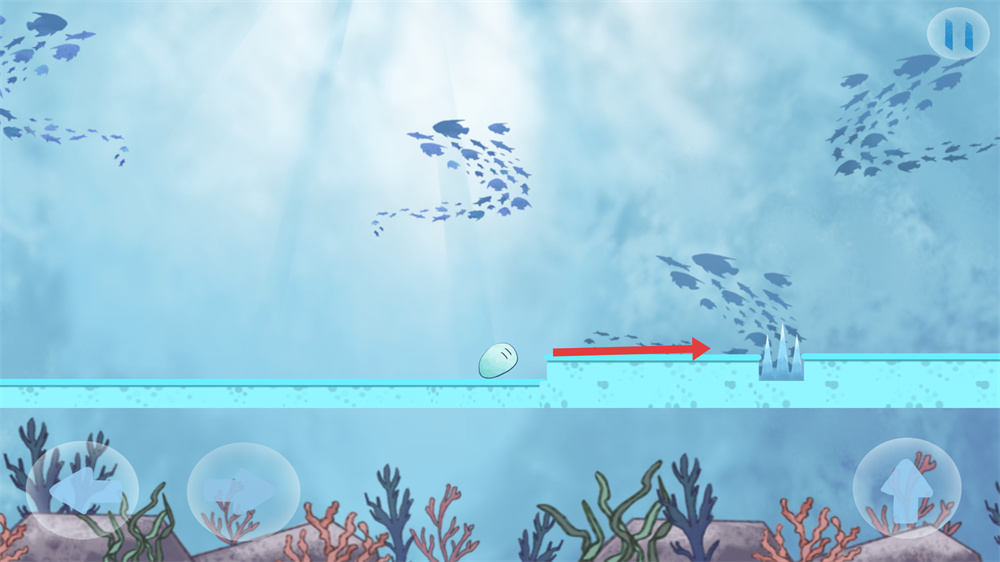 2、在海底場景中通過點擊左側左右方向的按鈕,控制角色在水平方向移動,探索不同區域。