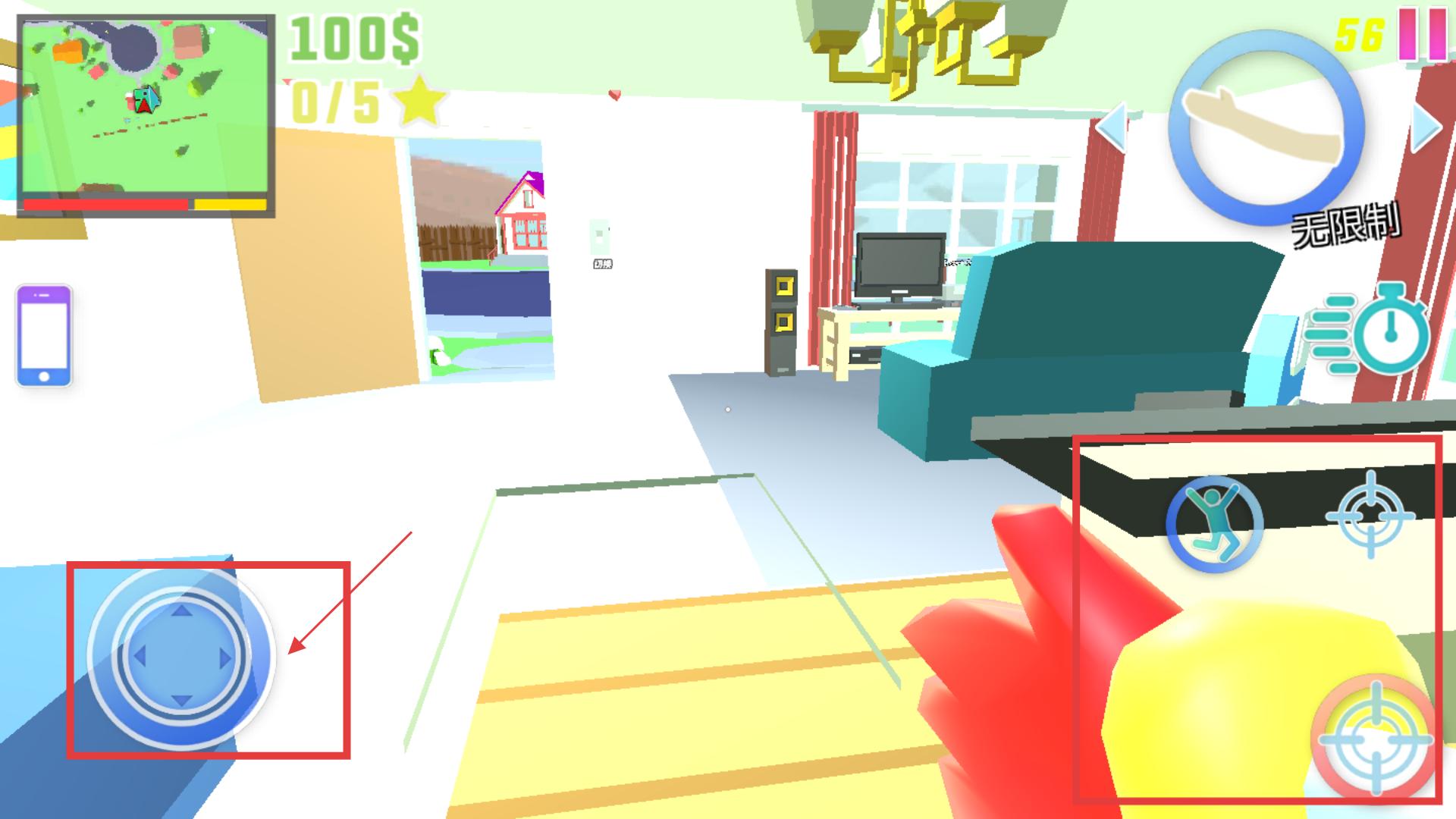 2、選擇好角色后進入游戲場景,利用左側的操控按鈕,控制角色在場景中移動,探索周圍環境,尋找任務目標或敵人。