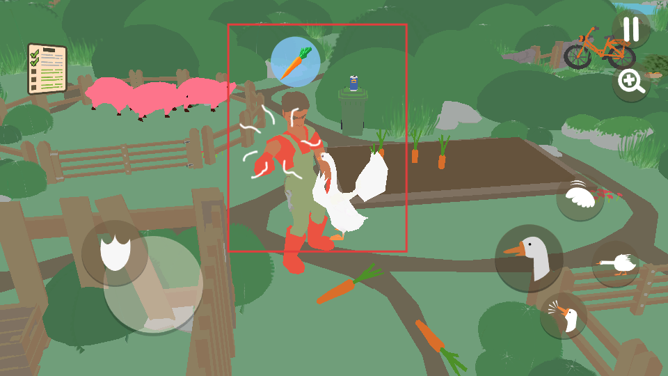 1、沙盒互動系統:設計超過50個可探索場景包含市集、花園等區域,每個場景設置獨特可互動物品,晾衣繩、易碎品等道具都會對大鵝行為產生物理反饋。