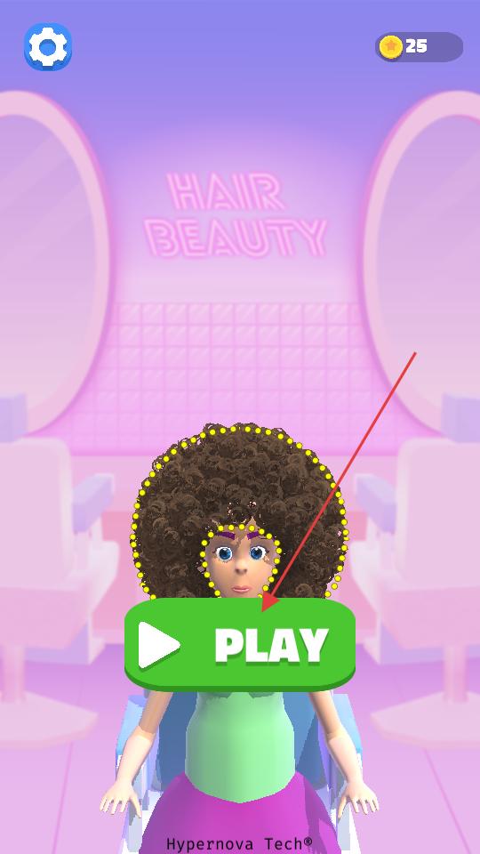 1、打開游戲點擊PLAY按鈕,進入美發美容場景,看到需要打理的頭發,準備開始進行美發操作,此時注意界面提示了解操作方式。
