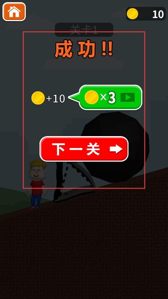 4、關卡成功后,會顯示成功提示,還能獲得金幣獎勵,然后點擊下一關按鈕,繼續挑戰新的關卡,體驗更多保護任務。