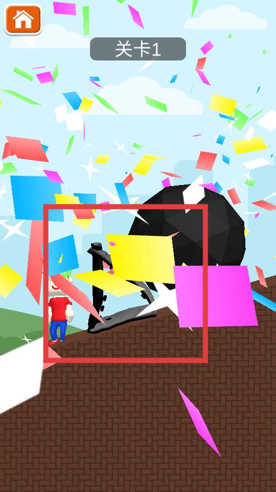 3、阻擋結構成功攔住大石后,會有彩色碎片特效出現,這表示阻擋有效,人物暫時安全,能感受到成功的喜悅。