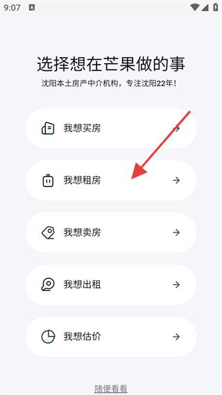 1、進入軟件功能選擇頁面,點擊我想租房,進入租房需求提交流程,明確租房意向,開啟房產服務體驗。