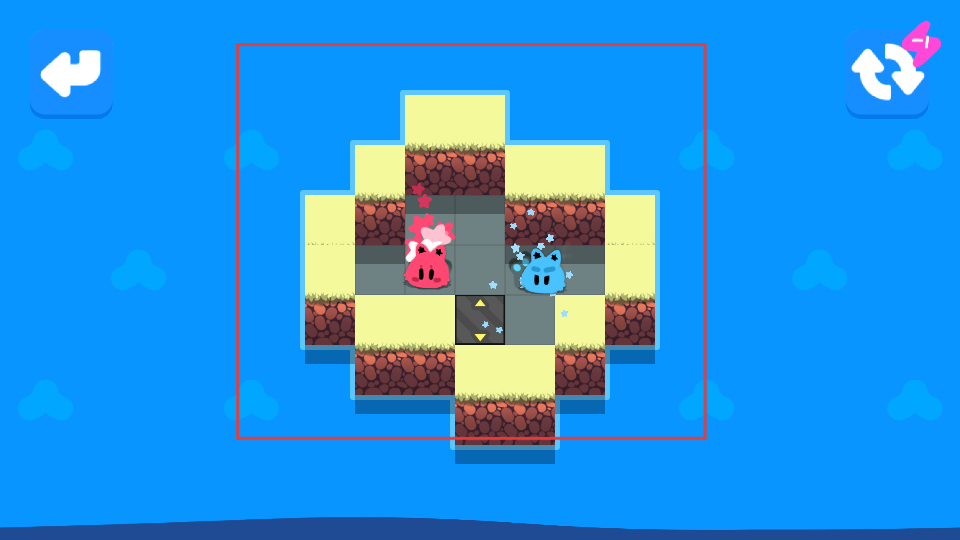 星島大拯救是一款充滿創意與挑戰的推箱子解謎游戲,擁有清新可愛的美術風格和精心設計的關卡系統。游戲采用雙主角控制機制,需要巧妙協調紅色MELO與藍色KELO的特殊移動規則來完成目標,突破傳統推箱子的單一操作模式。既能享受經典推箱子的策略樂趣,又能體驗獨特創新帶來的新鮮感。