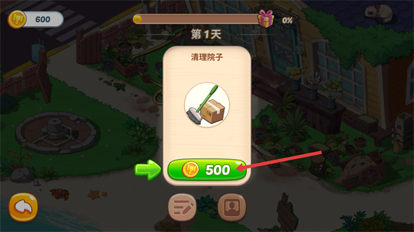 2、接取任務后,比如清理院子,完成任務可獲得金幣獎勵,金幣能用于花園的裝飾等操作。