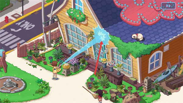 3、在花園場景里,可進行如給花店洗澡等互動操作,讓花園場景發生變化,增添游戲趣味。