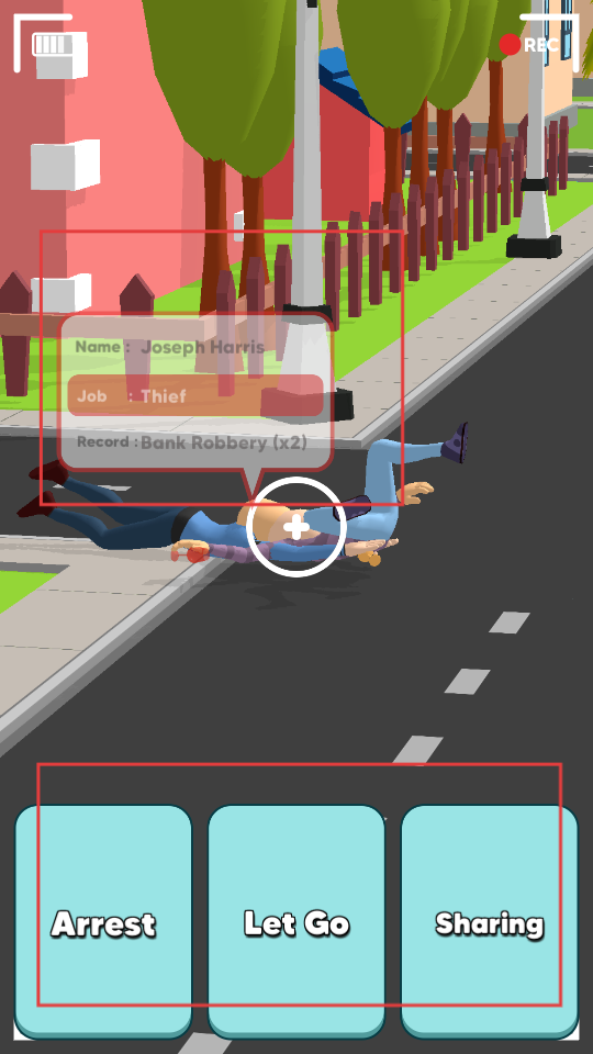 4、當遇到特定人物,如具有犯罪記錄的角色時,根據提示,選擇Arrest、Let Go或Sharing等操作,完成關卡內的決策任務。