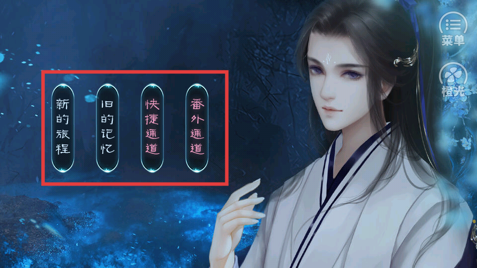 1、游戲初始界面有新的旅程、舊的記憶等選項,若想開啟新劇情點擊新的旅程,想回顧過往劇情選舊的記憶,快捷通道可快速跳轉,番外通道能體驗番外內容。