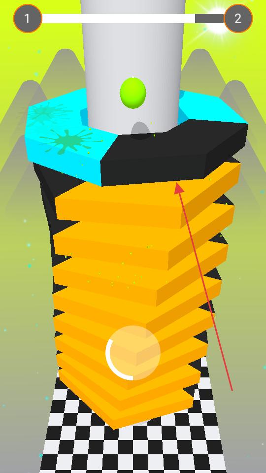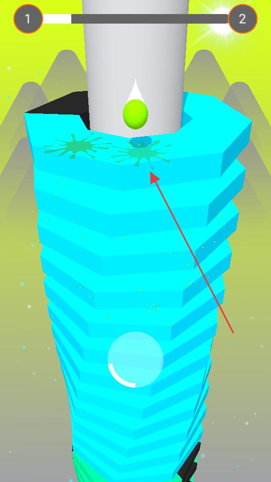 3、繼續操控小球撞擊后續遇到的黑色等分層結構,不斷破壞阻礙小球下落的結構,同時注意避免小球碰到黑色等危險區域。