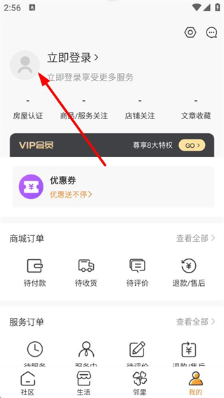 2、進入我的頁面后,能看到房屋認證優惠券等功能入口,點擊立即登錄選項,可進入賬號登錄相關頁面。