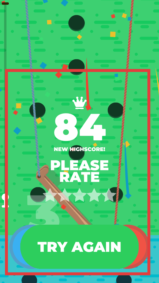 4、游戲結束后,會顯示得分,若創造新高分,可看到NEW HIGHSCORE,之后點擊TRY AGAIN,能重新開始游戲挑戰。