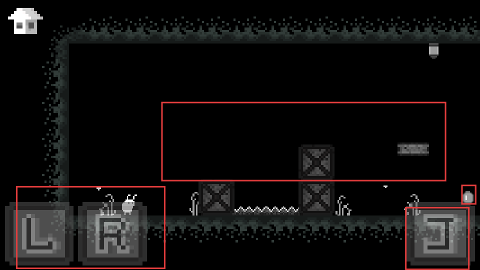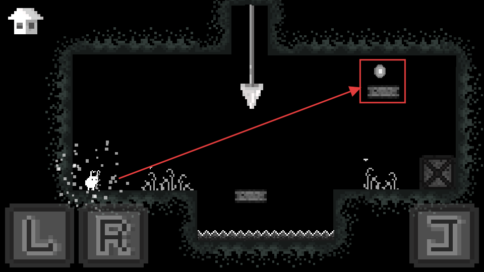 2、進入游戲場景后,利用L、R按鍵控制角色左右移動,J按鍵讓角色跳躍,在場景中探索,躲避障礙。