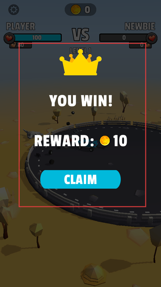 4、成功擊敗對手后,界面顯示YOU WIN,還有10金幣的獎勵,點擊CLAIM按鈕,就能領取獎勵,然后可繼續去未新關卡的車輛進行繪畫路線。